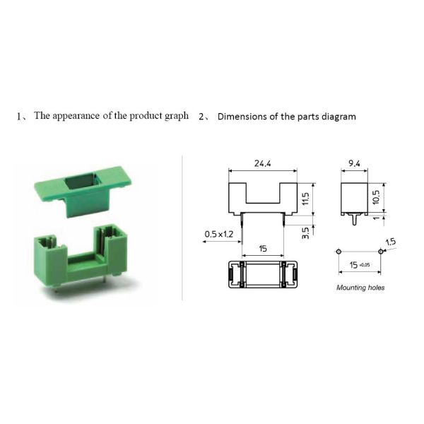 PTF-77 Mounting Hole 15mm PCB Mounted 5.2x20mm Tube Fuse Holder For Glass Ceramic Fuses Images |